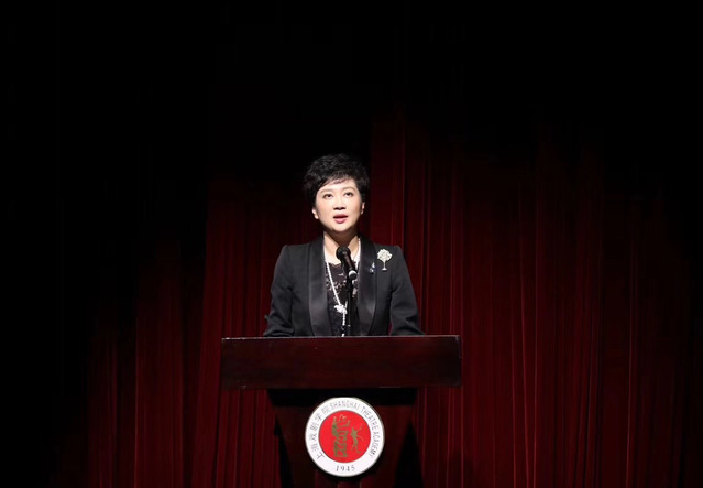 图为本剧项目负责人、导演,我校主持专业副主任董健老师致辞