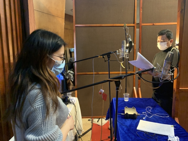 据悉,主创团队在疫情期间要避免聚集、严格做好防护、确保绝对安全的前提下,因此,该广播剧的录音棚里常常是演员在唱“独角戏”,这无疑给录音师的工作带来了难度。董健介绍,该剧的录音师是被喻为录音届的得奖专业户、国家一级录音师、电影电视学院的副院长詹新教授,正是他的通宵达旦确保了广播剧的艺术品质。