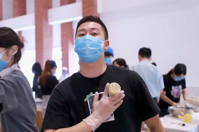 “第一次尝试就遇到了各种问题,但在王师傅的指导下,一枚枚定制月饼逐渐成型。”