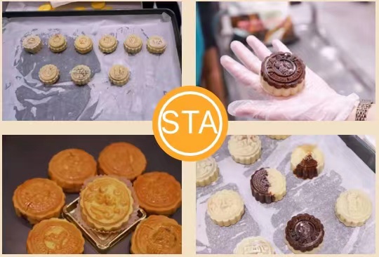 蒸冰皮,包馅,沾糕粉,活动现场热情满满。同学们有模有样地将皮馅包、揉、压模,皮薄馅满的月饼成型了。