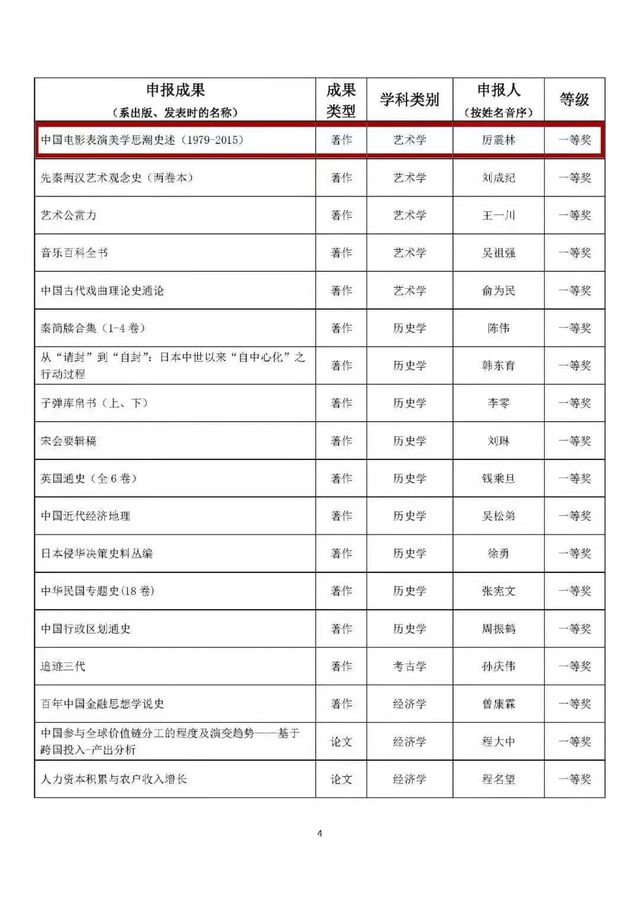 上海戏剧学院电影学院院长厉震林教授所著的《中国电影表演美学思潮史述(1979-2015)》,获得著作论文类一等奖。