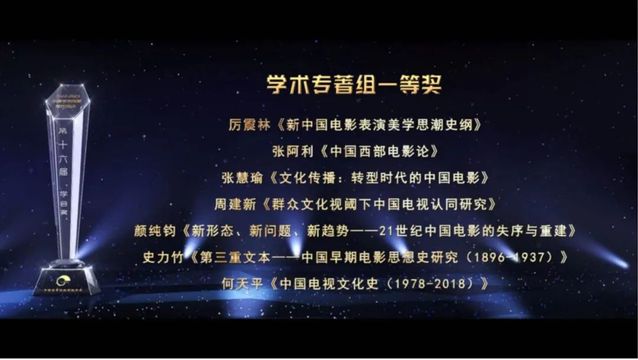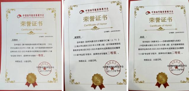 黄望莉教授的学术专著《赵明电影创作文稿影印汇编(上 下)》和赵武副教授的专著《电影考古——莎剧电影溯源与流变》获得第十六届“学会奖”学术专著组二等奖。