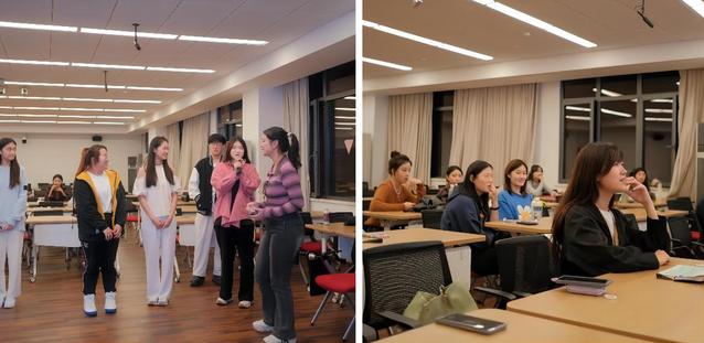 上海戏剧学院电影学院团总支书记、学生会指导老师马耀祖为上海戏剧学院与华东师范学院的学生骨干们进行了一个小小的“破冰”,同学们进行了一个30s的vlog视频制作练习,鼓励两校同学进行合作。练习结束,同学们进行视频分享,交流讨论,及时提出问题,有效促进两校同学之间的交流合作。