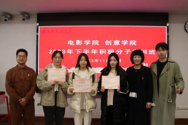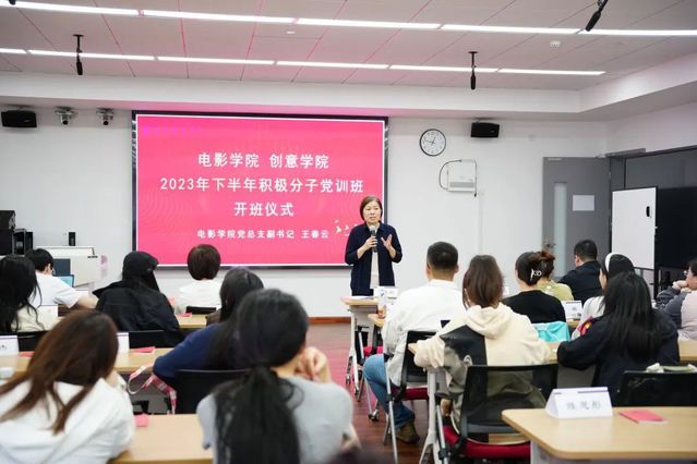 2023年11月2日,电影学院、创意学院入党积极分子党训班开班仪式在昌林路2号楼209教室举行。电影学院党总支副书记王春云、创意学院党总支副书记唐芳、创意学院学生第一党支部书记孔小磊、学生第二党支部书记陈龙、电影学院学生第一党支部书记马耀祖、学生第二党支部书记徐佳晨参加了此次入党积极分子党训开班仪式。培训班由电影学院学生第一党支部书记、本科生辅导员马耀祖老师主持。