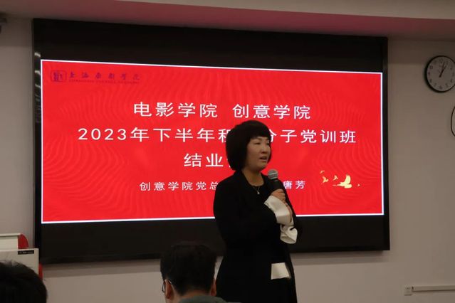 电影学院党总支副书记王春云老师向在场的入党积极分子表示祝贺的同时整体介绍了党训班的课程安排、各个阶段的课程任务与工作,并对这些身怀共同理想与追求的同学们寄予了殷切的期望。
