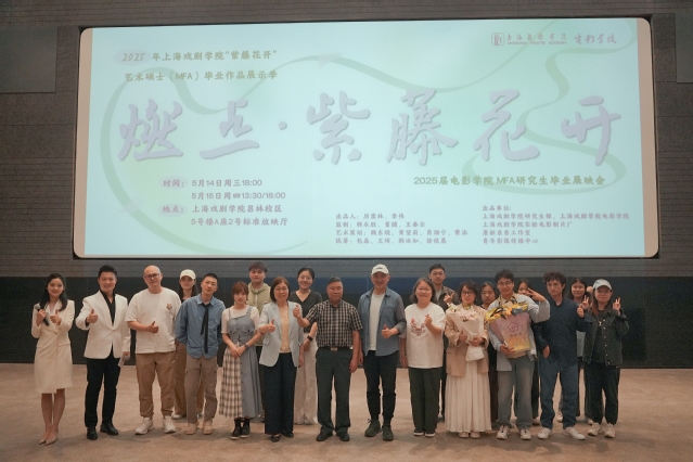 2025年5月14-15日,上海戏剧学院电影学院在昌林路校区5号楼A座2号标准放映厅举办了燃点·紫藤花开2025届电影学院MFA研究生毕业展映会。电影学院院长厉震林、电影学院书记韩永胜、电影学院副院长董健、电影学院副书记王春云、电影学院研究生办公室主任包磊以及各位硕士导师,学院师生一同出席了这次展映活动。