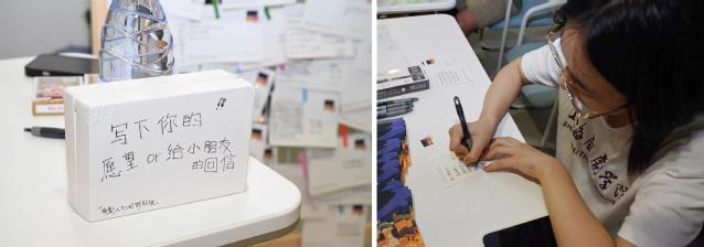 2025年6月23日上戏场放映活动中,观众在预热环节领取到新疆孩子的明信片,并提笔回信——有人画下外滩灯火,有人写下光影感悟。