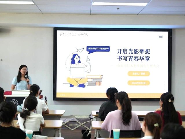 紧接着,2025级全体新生大会在313教室举行。本科教务林小慧老师为同学们系统讲解了选课流程、课程考核、学分制度等教学管理事项,帮助大家清晰规划学业。