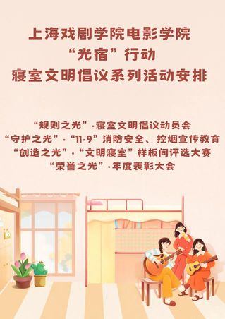 为进一步创新宿舍管理模式,电影学院成立“光宿”学生自我管理委员会。在未来即将举办一系列活动,践行“文明之光,‘宿’造美好”理念。