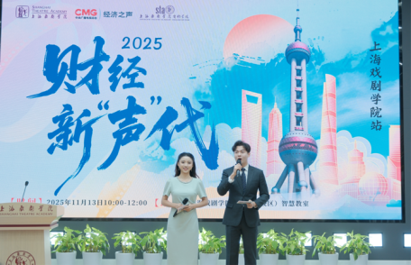 2025年11月13日,由中央广播电视总台经济之声与上海戏剧学院学工部、团委、电影学院联合主办的《2025财经新“声”代展示大会》在上海戏剧学院昌林路校区成功举办。活动以“青春视角+艺术表达+财经内核”为核心理念,通过影像创作、主题演讲、互动课堂等形式,展现艺术与财经深度融合的传播新范式,探索财经内容青年化表达的创新路径。