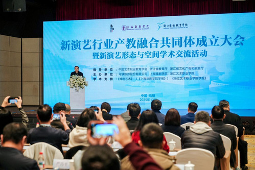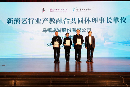12月6日,新演艺行业产教融合共同体成立大会暨新演艺形态与空间学术交流活动在乌镇隆重举行。作为共同体牵头高水平高等院校与大会联合主办单位,上海戏剧学院携手乌镇旅游股份有限公司、浙江艺术职业学院一同为新演艺行业搭建起产教深度融合的创新合作平台。本次活动还得到中国艺术职业教育学会、浙江省教育厅、浙江省文化广电和旅游厅指导支持,来自全国演艺行业院校、企业、科研机构及行业协会的百余位嘉宾齐聚水乡乌镇,共商产教融合大计,共话行业创新发展。