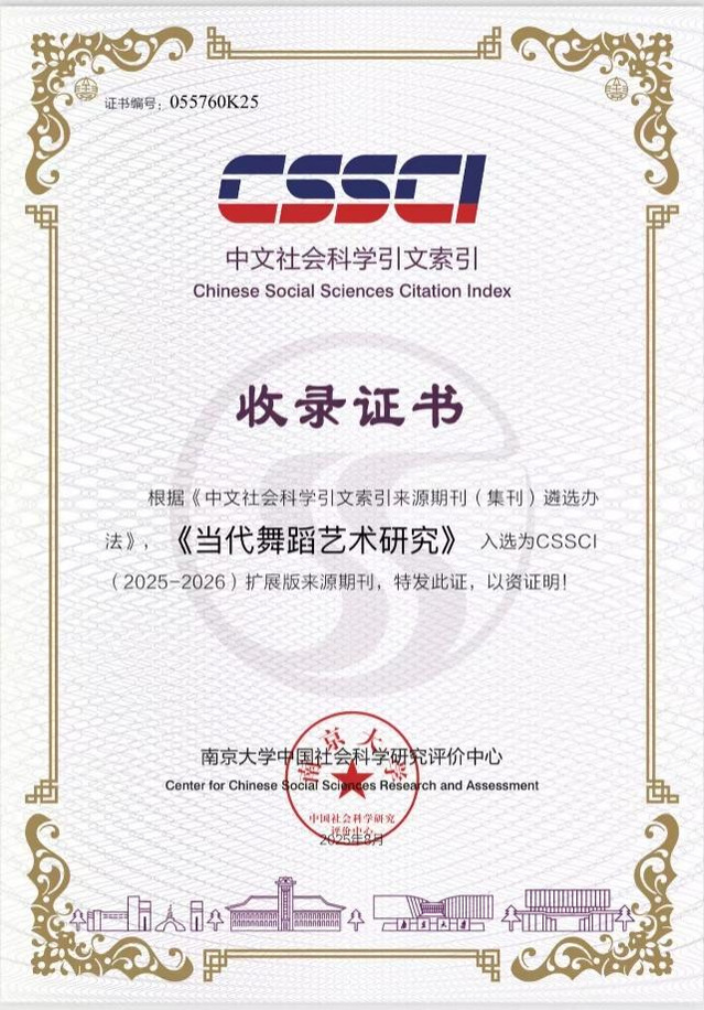 三大期刊引用、转载与评价指标显著突破。《当代舞蹈艺术研究(中英文)》于2025年成功入选CSSCI(2025—2026)扩展版来源期刊,是入选名单中较为年轻的期刊,这是开云足球首页官网下载期刊建设中的突破和提升。