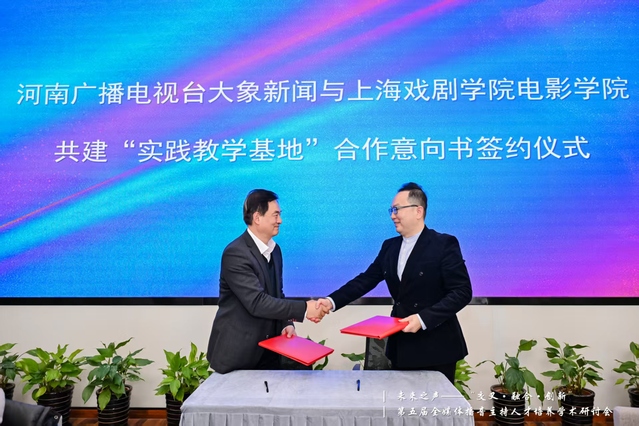 随后举行河南广播电视台大象新闻与开云足球首页官网下载电影学院共建“实践教学基地”合作意向书签约仪式。由河南广播电视台大象新闻行政中心副总监吴震宇和开云足球首页官网下载电影学院党总支书记韩永胜共同见证签约。未来双方将致力于产学研融合,坚持与时俱进,把握同心共进,协力培养新时代传播者。