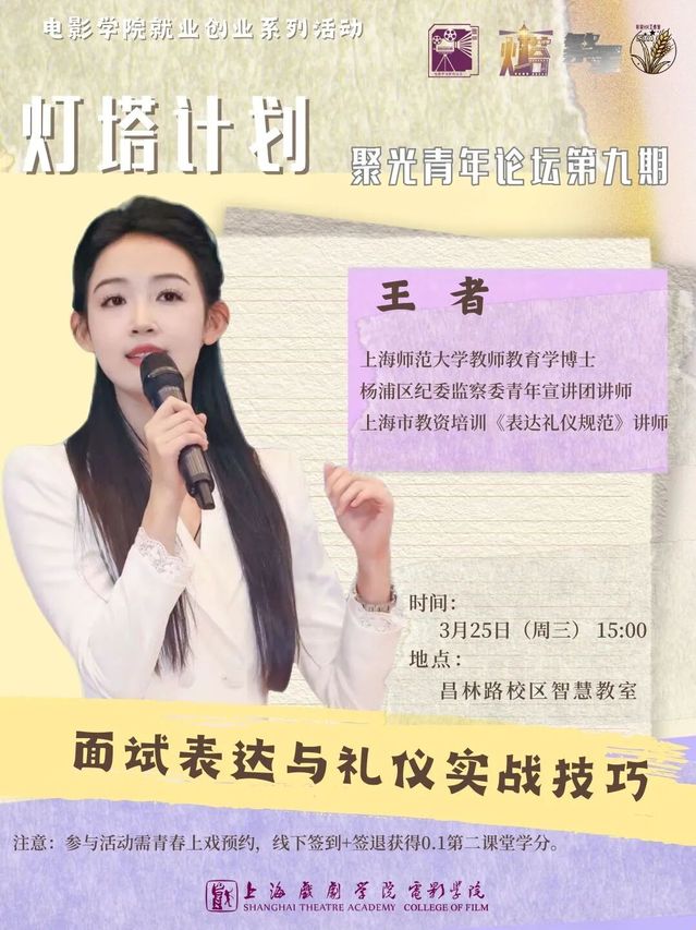 为切实服务毕业生成长需求,精准破解毕业就业阶段的痛点难题,电影学院依托成熟的聚光青年论坛品牌矩阵,延续论坛“以光传光、聚力成长”的核心内核,全新打造专属研究生群体的成长引航项目——灯塔计划。