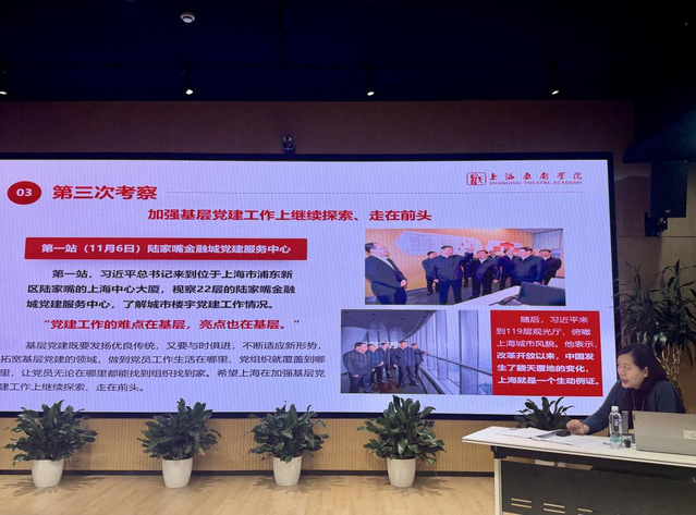 为深入学习贯彻习近平新时代中国特色社会主义思想和党的二十大及二十届历次全会精神,严把党员发展关口、提升党员发展质量,扎实做好新时代党员发展工作,表演系(含音乐剧中心)党总支、导演系党总支、戏文系党总支和舞美系党总支联合开展2026年上半年华山路校区(四院系)入党积极分子培训班,本次培训班由导演系党总支轮值承办。导演系党总支书记尹悦蓉、舞美系党总支副书记徐辉、表演系(含音乐剧中心)党总支副书记夏逸石,四院系学生党支部书记、副书记以及35名入党积极分子参加仪式,开班仪式由导演系党总支书记尹悦蓉主持。