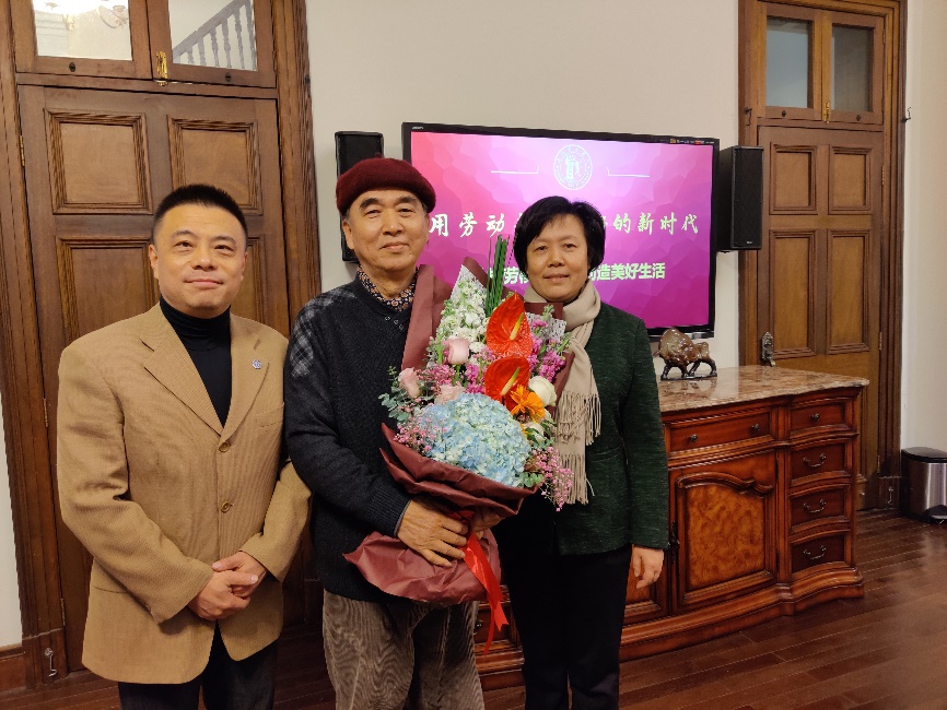 2019年12月20日下午,上海戏剧学院党委副书记胡敏,党委副书记、副院长、工会主席张伟令代表全校教职工慰问了我校全国及上海市的劳模(享受劳模待遇)和五一劳动奖章获得者,向他们献上鲜花。上海市劳模孙祖平老师、全国文化系统先进工作者范和生老师、全国五一劳动奖章获得者王立军老师、上海市劳模陆军老师、上海市劳模杨新华老师、上海市五一劳动奖章获得者裴晶老师、接受了慰问。张伟令院长本人也是全国五一劳动奖章获得者,使这次活动更有意义。