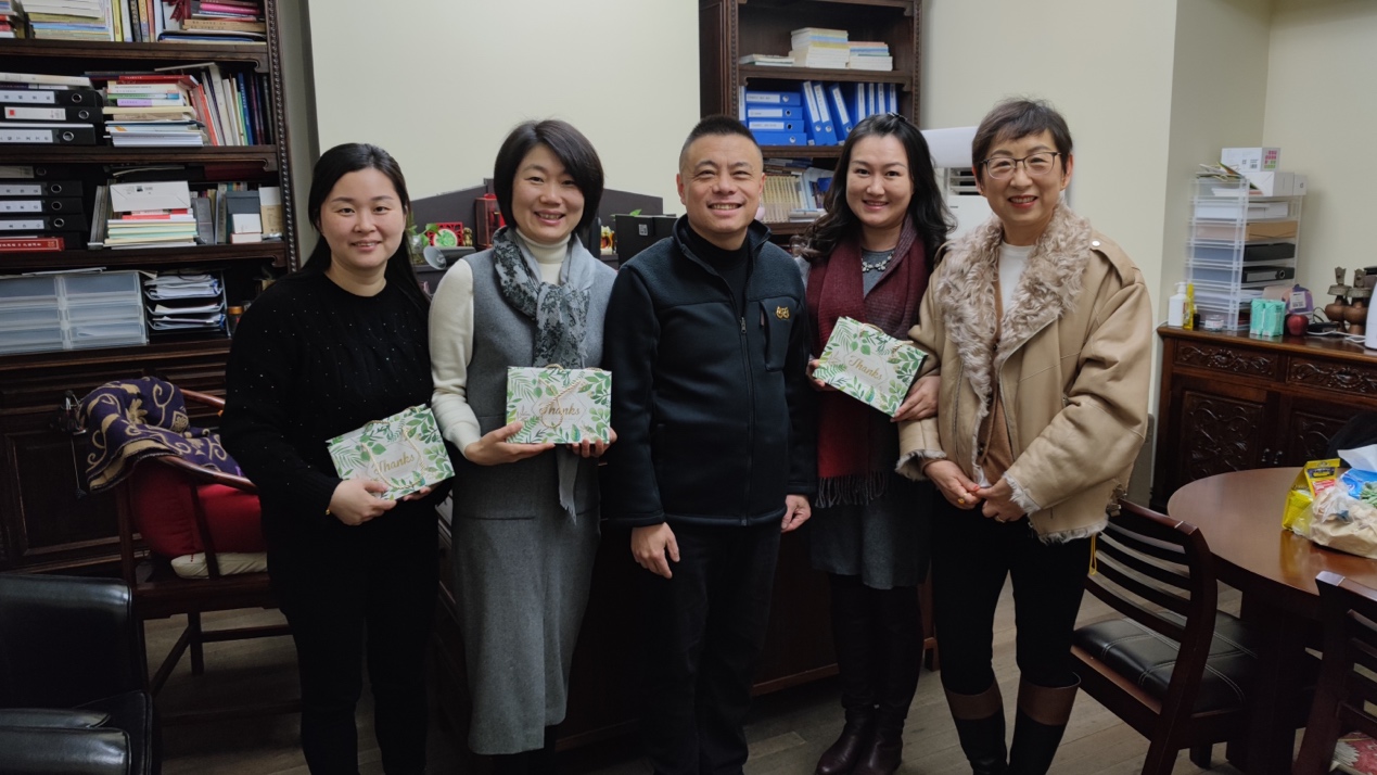 张伟令主席、张云蕾副主席带领工会的老师们来到每个部门,将礼物送到女教职工的手中。同时,他们也走访了食堂、物业,将礼物送给最辛苦的工作人员,向她们道一声“感谢”并祝她们节日快乐。今天,这些小礼物也送到了上戏其它校区,让每一位女教职工都能收到节日的祝福。