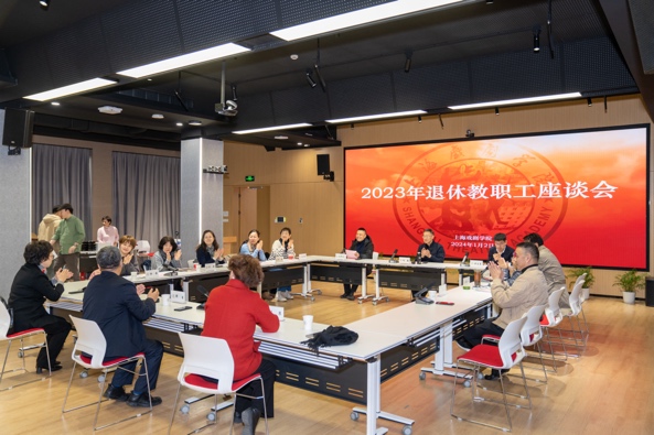 124日,2023年退休教职工座谈会在华山路校区智慧教室举行。上海戏剧学院党委书记谢巍,党委副书记、院长黄昌勇,党委副书记、副院长、工会主席张伟令出席了会议,并与教职工们亲切座谈,并为退休教职工送上学校的祝福。