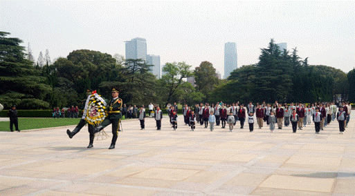 首先,师生们列队进入龙华烈士陵园,在纪念碑广场举行庄严的祭奠仪式。