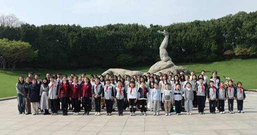 活动最后,师生们行走至无名烈士墓,在此缅怀为了上海解放牺牲的无名烈士事迹。无名烈士墓后山坡上的雕像巨大的人物身躯,半藏于地下,半出于土面,愤然力举,向着新中国前进!