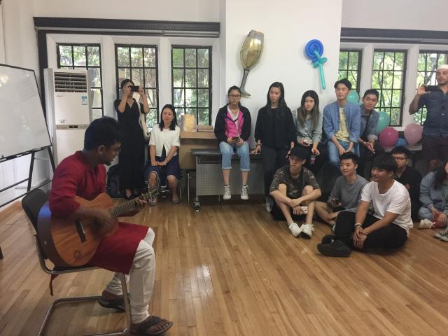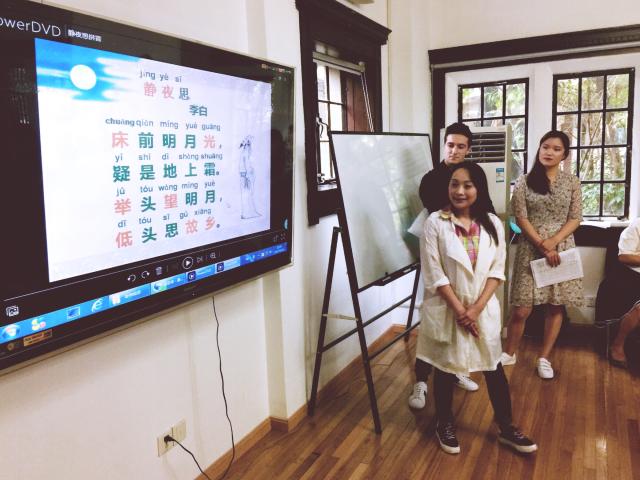 联欢会上,留学生教师和学生们各展才艺。印度同学Subesh的宝莱坞歌曲极具民族特色,从一开始的浅吟低唱到后来的热烈奔放,唱出了他对家乡的美好祝愿,带动了全场的气氛。法国华裔张斯斯同学自弹自唱的一首Quelqu’un m’a dit清新舒缓,委婉动情。意大利葛金鹰同学自创的普通话和上海话RAP铿锵有力,幽默风趣,high爆全场。留学生老师们饱含深情地朗诵了李白的《静夜思》,并以各自方言对诗歌进行诵读,不仅展现了中国传统诗词的优美,也让同学们了解了中国各地的方言文化,赢得全场的阵阵掌声。联欢会另外设置了游戏环节,还准备了月饼和披萨等美食,让同学们在愉快轻松的氛围中互相认识,加深了解。最后,联欢会在《友谊天长地久》的音乐里圆满结束。