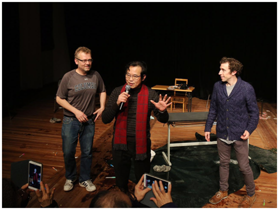 上戏和哥大编剧专业研究生交换培养项目迄今为止已经成功完成了三届,它是以开云足球首页官网下载编剧学学科带头人陆军教授和美国哥伦比亚大学教授、《蝴蝶君》作者黄哲伦两人互换学生的方式进行合作培养。每年哥伦比亚大学和开云足球首页官网下载各派出两位学生到对方的学校进行学习。正如本项目的中方导师陆军教授坦言:这对于上戏来说既是次机遇也是场挑战。面对来自世界一流大学的学生,如何让他们能在上戏的学习中真正有所收获,如何让他们对我们的教学感到满意?为此我不仅要精心安排最合适的课程,而且还安排了每节课都有几十位上戏研究生陪同跟读,同时还定期组织采风和交流活动。经过近三个月各方面共同的努力,我们获得了美国学生的深切认同与肯定,他们也在为期三个月的学习生活中收获良多。与此同时,中方学生也在共同学习与交流的过程中收获了新颖的戏剧观念与对生活的看法。如麦克斯·蒙迪和戈登·佩恩对戏剧真实情境和空间的不懈追求与强调,即使在本次演出落幕后仍会在我们的脑海中留下印象,并在不经意之间悄然影响我们的创作轨迹。