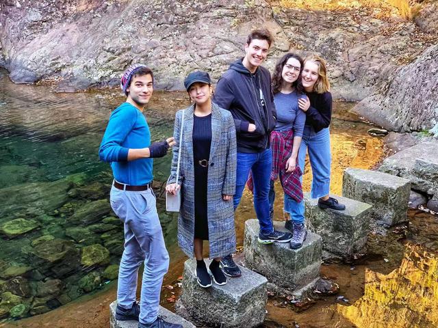 本次浙江之旅主要考察瑶琳仙境、白云源风景区两处。瑶琳洞是当地最著名的钟乳石山洞,洞内的石笋和钟乳石造型各异,在五色灯光映衬下异常瑰丽。学生们充满好奇地在洞内探索,聆听导览人员介绍宋代诗人柯约斋描写瑶琳仙境的七言律诗,试图理解中国古人缘何将这个梦幻仙境比作“壶中天”、“蓬莱岛”、“桃花源”、“武陵村”,并纷纷感叹大自然的巧夺天工。傍晚时分,大家带着对瑶琳仙境的依依眷恋入住位于桐庐市中心的酒店,品味了具有当地特色的晚餐,同学们对每一道菜都赞不绝口!