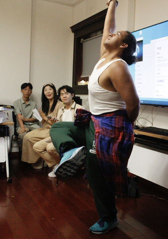 最后进行的“翻译家”游戏也乐趣横生,同学们根据对方语言猜测含义,并模仿对方肢体动作,展现出不同文化、国家的特色表达。