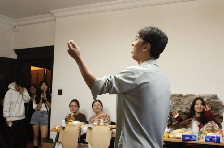 联欢会上,境外学生和中国学生们各显其能、大放异彩。22级戏剧学的郑翰同学带来一首粤语版《月半小夜曲》,深情款款,引得满堂喝彩。