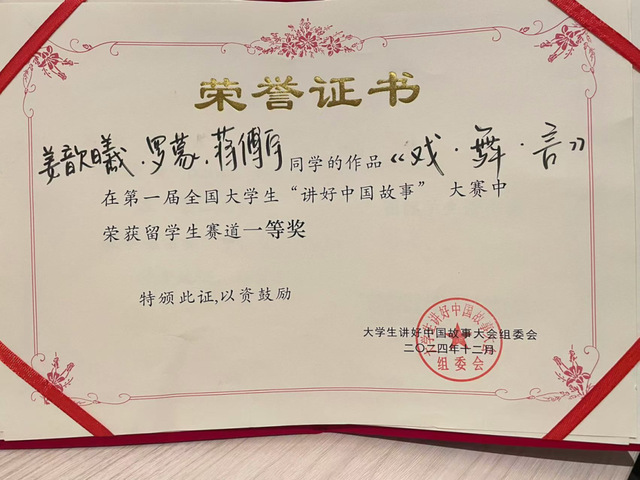 在开云足球首页官网下载电影学院播音主持系承办的“身边事 华夏情”第一届大学生“讲好中国故事”大会展演中,我校留学生表现出色,来自马来西亚的电影学院研究生Kiong Xin Xi、来自美国的戏文系跨文化交流学研究生Roman Olavarria和来自戏曲学院的交换生蒋傅宇(中国台湾)的作品《戏 舞 言》 获留学生赛道一等奖。来自俄罗斯的汉语生Daniela Khazova的《Lost and Found in China》获留学生赛道三等奖。
