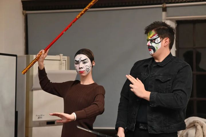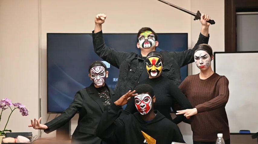 在主讲老师的引导下,中外学子共同走进京剧的“行当”世界。从“生、旦、净、丑”的角色分类,到脸谱色彩中“红忠黑正白奸”的象征意涵,系统的知识讲解为所有参与者——无论是初识京剧的中国同学,还是充满好奇的国际友人——构建起对京剧艺术的初步认知框架。