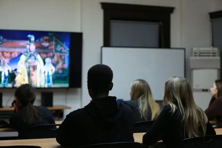 在经典片段欣赏环节,参与者结合刚学到的戏曲知识,共同观摩了《霸王别姬》《三岔口》等精彩选段。留学生们对华美的戏服与程式化表演赞叹不已,也对京剧乐队伴奏表现出浓厚兴趣。多元视角在观摩后交织碰撞,引发了热烈讨论,进一步深化了大家对京剧作为综合艺术的立体理解。