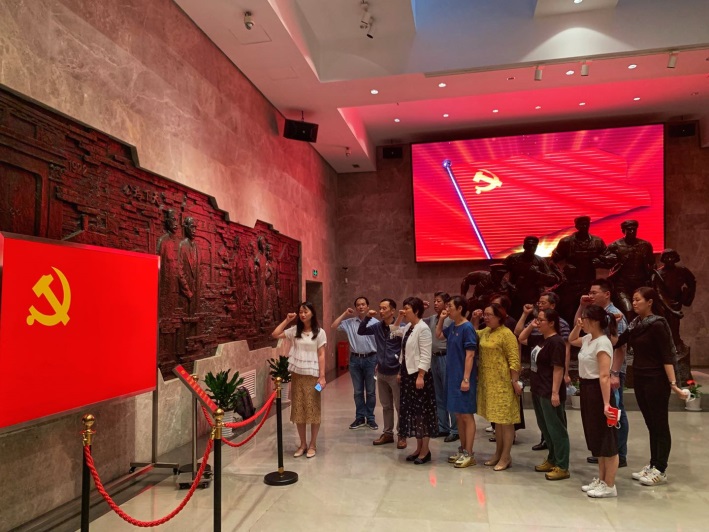 在纪念馆序厅,学校党委副书记、纪委书记周银娥同志号召大家重温入党誓词。在庄严的大厅里,面对鲜红的党旗,纪检干部激情满怀地进行了宣誓。宣誓仪式结束后,有纪委委员感慨地说:“前几天所在党支部虽然刚组织了重温入党誓词仪式,但每次对着党旗宣誓,都是心潮澎湃,内心无比激动。”