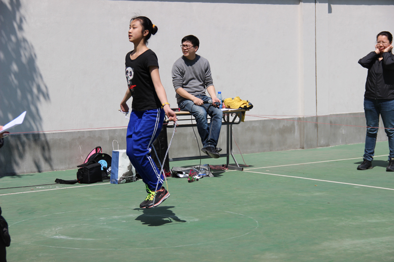 比赛分为长绳比赛、短绳比赛、踢毽比赛三个项目。随着比赛总裁判蒋文斌老师的一声令下,长绳比赛开始,各班选手立刻腾空而起,长绳在半空中划出一道道优美的弧线。为了这次比赛,许多班级的同学都提前利用课余时间加以训练,希望能在全校大赛中一展风采。最终,获得本次长绳比赛第一名的是2011京剧班、2010武戏班,第二名2010音乐班、2013音乐剧班,第三名2011音乐班、2013话影班。