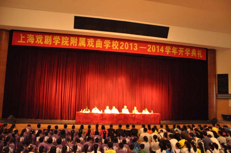 2013年9月1日上午9:30分,在庄严的国歌声中,上海戏剧学院附属戏曲学校2013--2014学年开学典礼在学校剧场隆重举行。参加开学典礼的有郭宇校长、贡献国书记、侯永强副校长、校长助理韩婷婷、办公室主任孙蕾、教导科科长胡根夫、学生科科长刘爱香等中层干部以及各教研组组长和各班班主任。