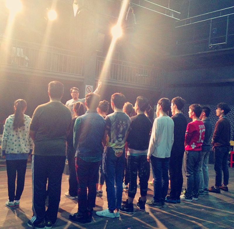 整个工作坊活动以示范课的形式为主,由叶子彦老师带领学生做表演训练,如“随音乐舞动”、“数到45”、“听口令做动作”、“我被电到了”、“声音变化”等新鲜有趣的练习,使学生们乐在其中,黑匣子剧场内笑声不断、气氛活跃。短短一个半小时的表演训练内容结束后,叶子彦老师还向师生们介绍了台湾复兴高中戏剧班的相关情况,并播放了该校公开演出的纪录片,使大家对台湾艺术类中学的面貌有所了解。