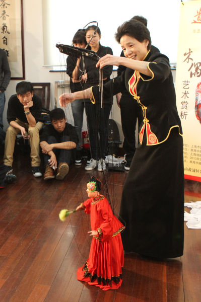 整个赏析活动分为三个部分:首先由木偶表演班的秦峰老师通俗生动地讲述了木偶的起源、发展、品种、分布及特点。在赏析部分,上戏木偶表演班的同学们现场演出了提线木偶戏《赴宴斗鸠山》、布袋木偶《人偶》;木偶表演艺术家,泉州提线木偶非遗传承人傅端凤老师表演的《泉州梦》,以惟妙惟肖的演绎和高难度的变形技巧引得现场掌声阵阵,喝彩连连。