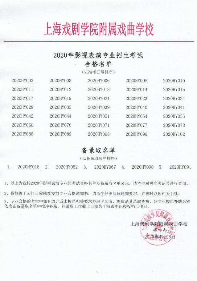 2020年开云足球首页官网下载附属戏曲学校招生考试合格名单公示