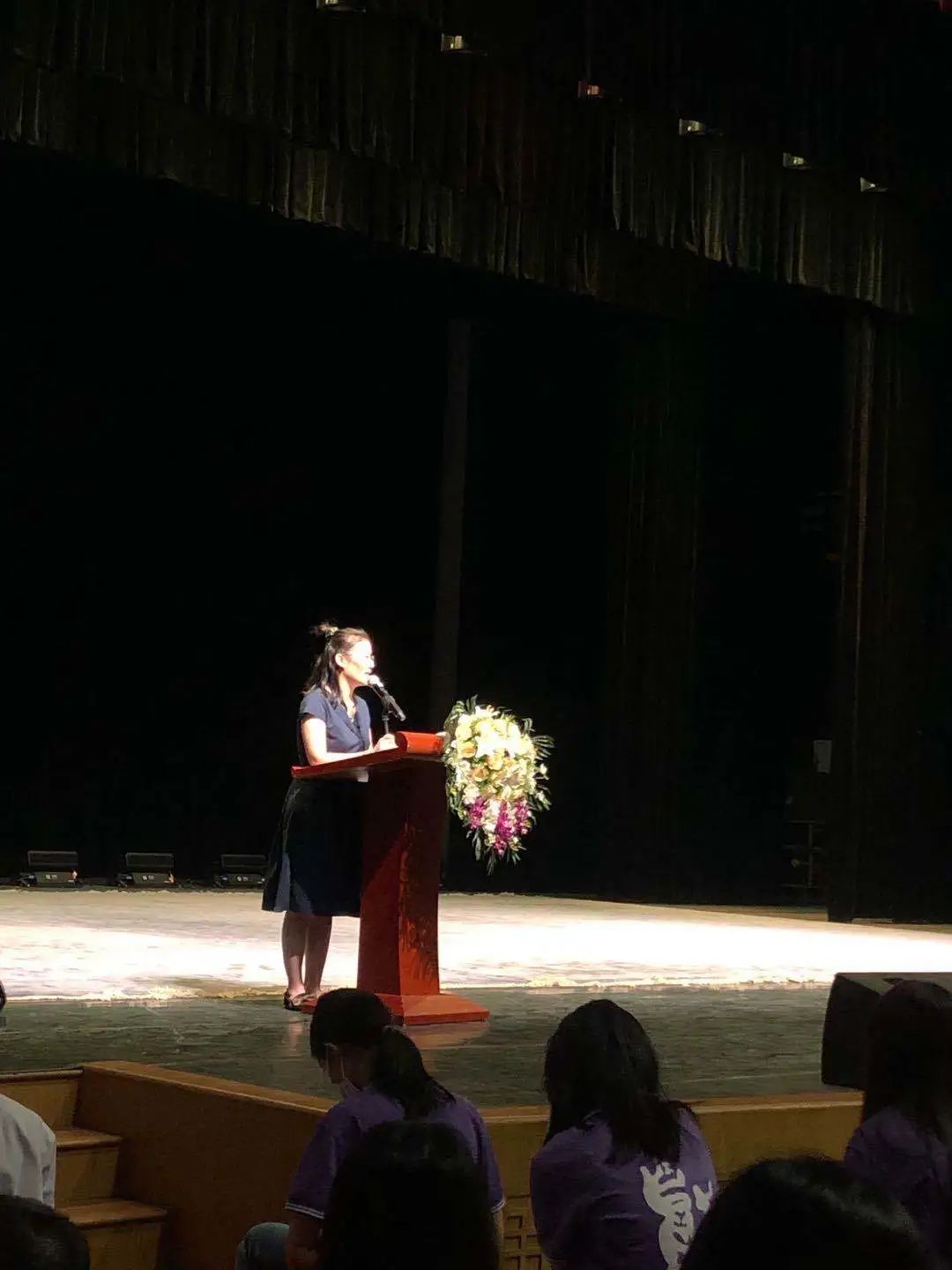 教导科科长李美老师为同学关于讲解了新学期的教学安排并让学生们展望未来,奋起直追,激励同学们“为自己的生命书写一份美丽的答卷”。