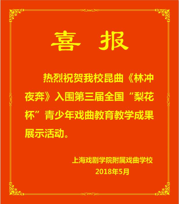 热烈祝贺我校昆曲《林冲夜奔》入围第三届全国“梨花杯”青少年戏曲教育教学成果展示活动