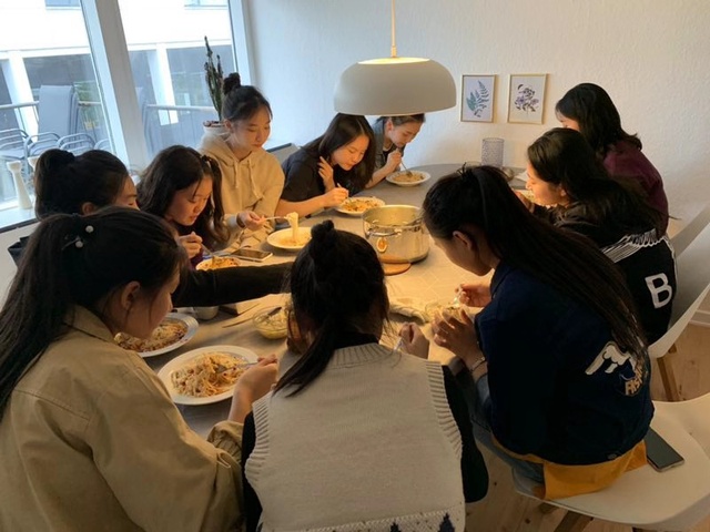 在住家,我们感受到了丹麦人的热情,他们对我们很照顾,吃饭时也会顾及我们的口味。饭后大家会一起在院子里喝茶聊天,他们对于中国文化也很好奇,经常向我们问一些关于中国传统方面的问题。
