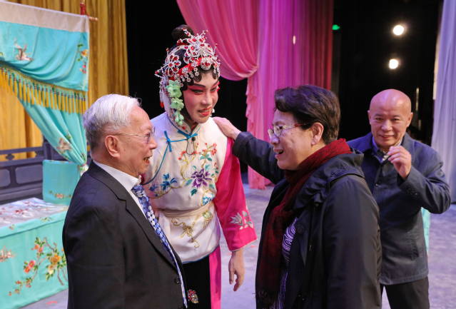 演出结束之后,前来验收项目的基金会专家及我校领导同主创人员,进行了简短的艺术座谈会,首先,对《遗翠花》的汇报展演给予了很高的评价,也对类似这种极具典型的京剧“三小戏”的濒临失传深深感到惋惜和重视。其次,对我校青年教师积极学习、积累失传剧目的行动表示充分肯定,基金会表示,鼓励我校教师继续申报基金会各种扶持项目,愿与校方结合,一同为京剧艺术的传承发展、青年教师的艺术成长共同努力,本次教师扶持专项汇报展演圆满完成。
