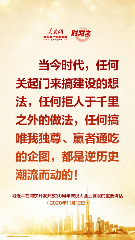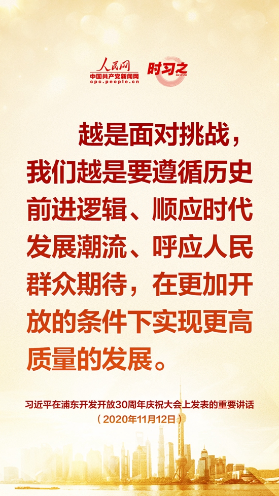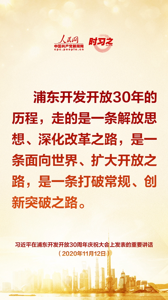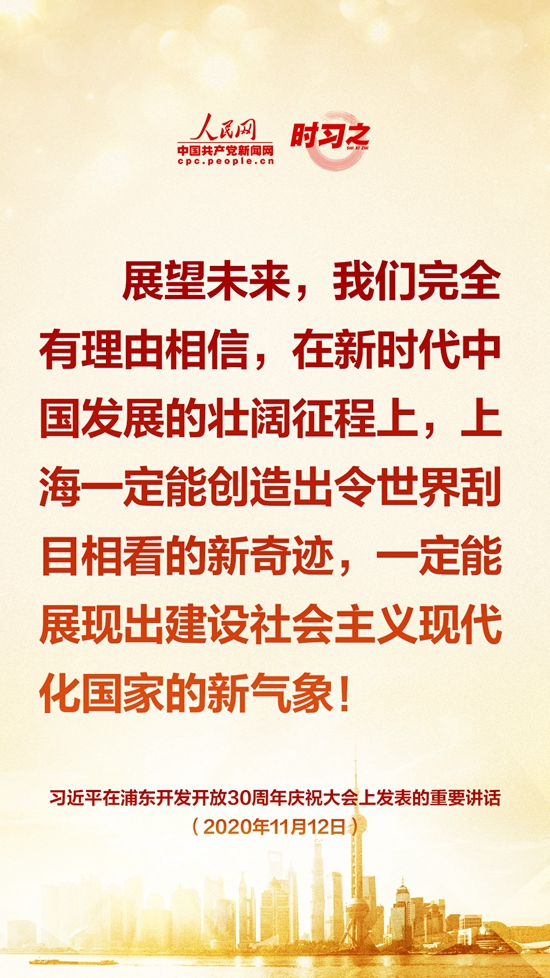 11月12日上午,浦东开发开放30周年庆祝大会在上海世博中心举行。中共中央总书记、国家主席、中央军委主席习近平出席大会并发表重要讲话。人民网·中国共产党新闻网“时习之”栏目制作了9张金句海报,带您一起学习。