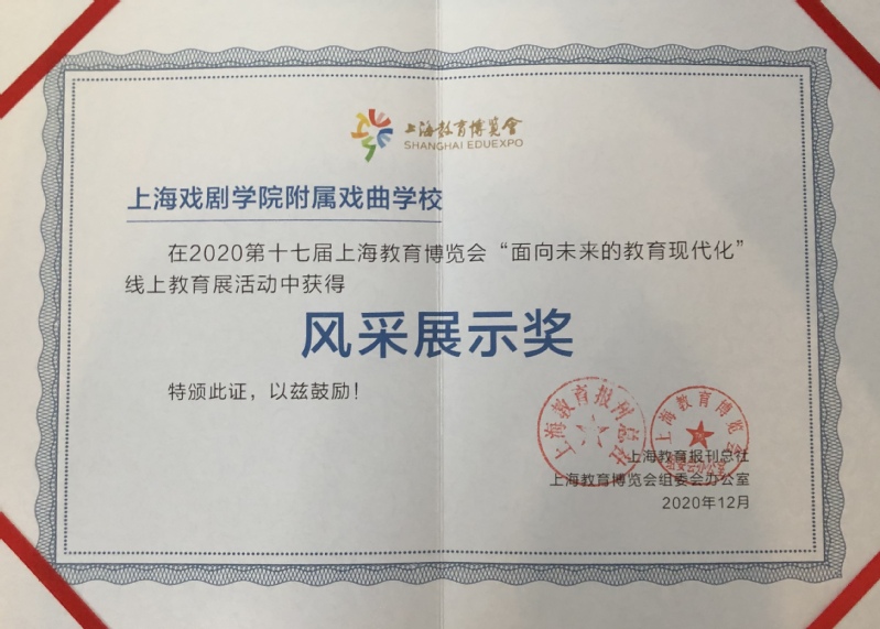 祝贺我校获得2020第十七届上海教育博览会“面向未来的教育现代化”线上教育展示活动奖