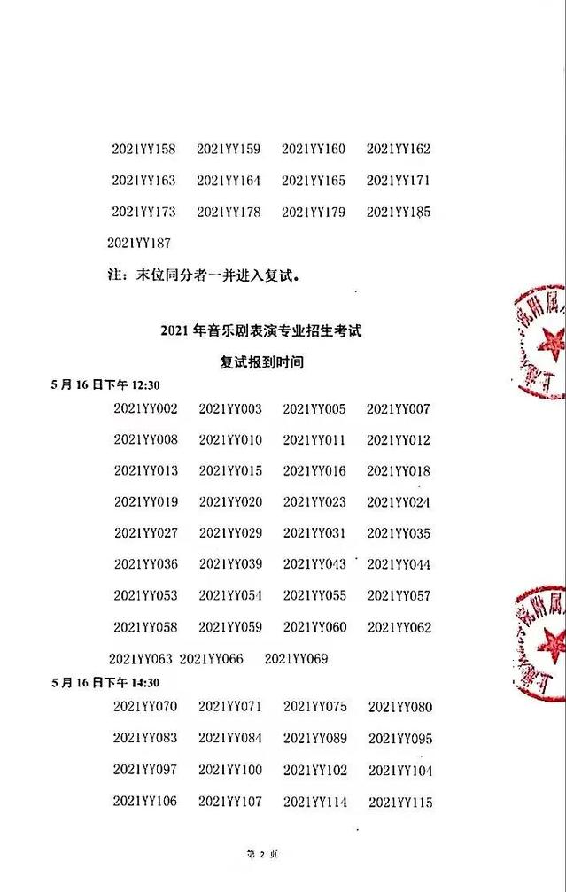 2021年音乐剧表演招生考试进入复试名单、复试报到时间