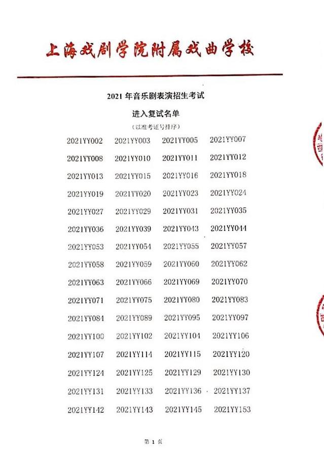 上海戏剧学院附属戏曲学校2021年音乐剧表演招生考试进入复试名单