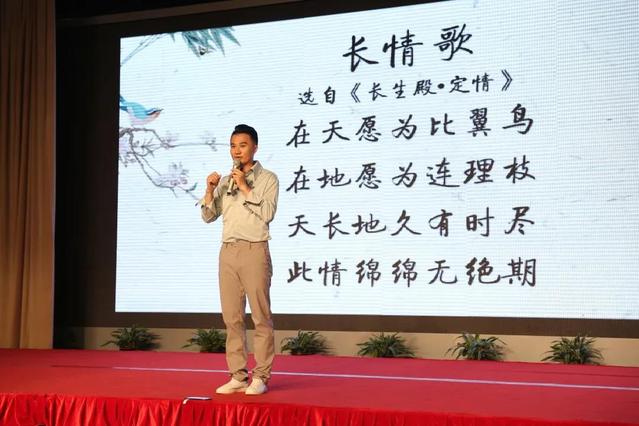 对此,他一直非常后悔和痛苦,直到两年以后,在香港艺术节演出的时候,奇迹发生。那一场演出,剧末50年以后与女主角的对视足足停了几十秒钟,戏后他告诉导演,“我见到父亲回来了……我觉得特别安慰,就像这出戏想要表达的意境一样:穿过生死狭窄的甬道,你我久别重逢。”在那一刻,他终于知道艺术到底是为了什么:“昆曲是我战胜时间的唯一武器”。带着这样的一份感悟,张军校长现场演绎了《春江花月夜》全曲,荡气回肠的演唱更是让现场观众听的如痴如醉,掌声不断,将活动推向高潮。