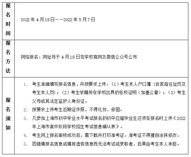 (六)根据上海市教委相关规定,凡参加“上海市中职校自主招生随迁子女”或“上海市高中阶段学校招生”并被录取的考生,我校无法提档录取。