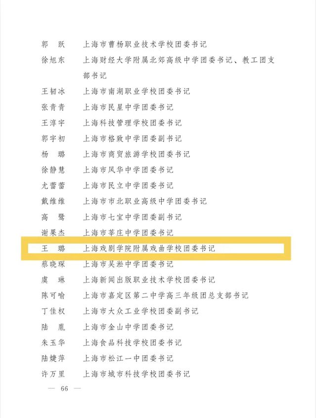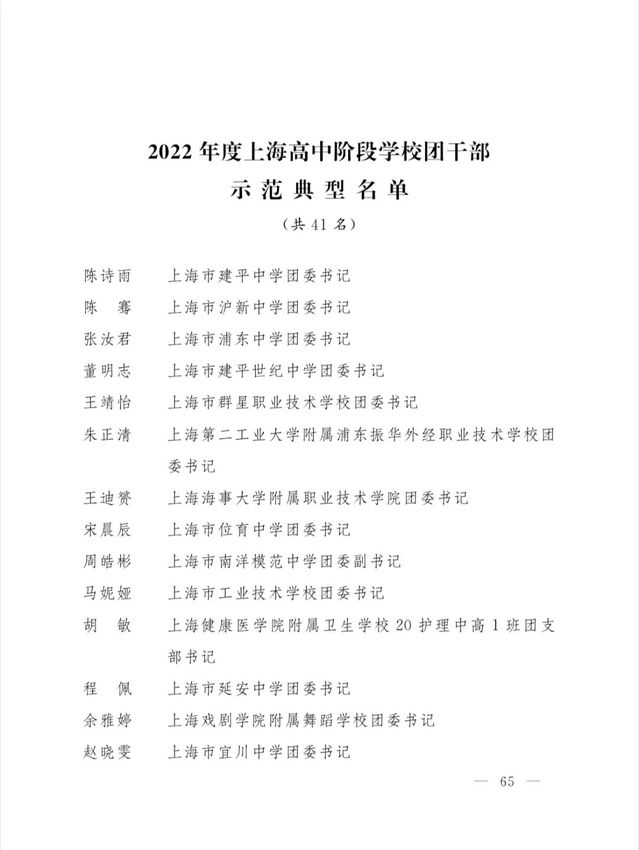 热烈祝贺我校教师王璐获得2022年度上海高中阶段学校团干部示范典型。