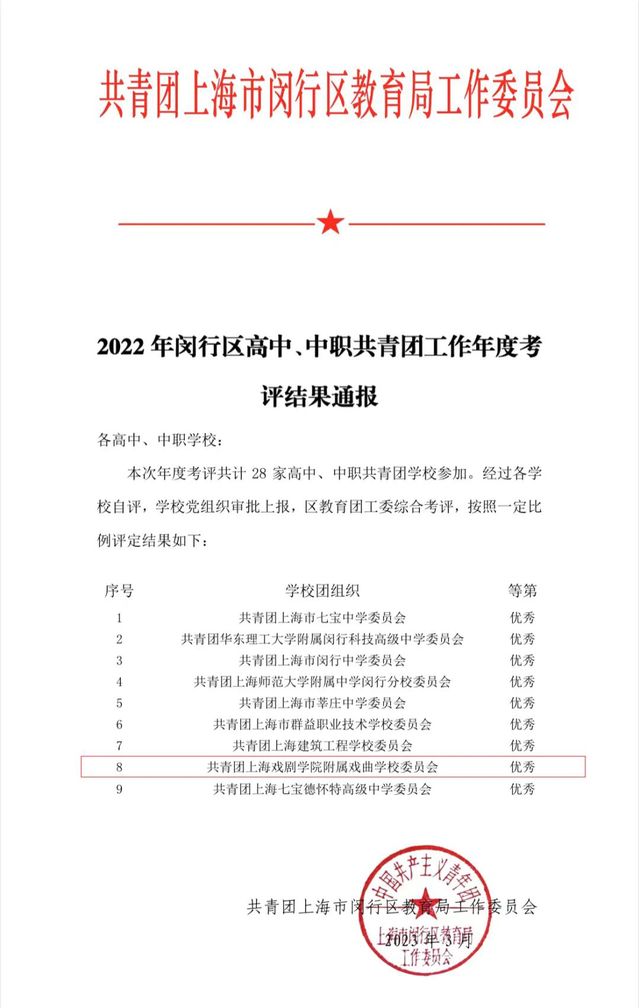 喜报:我校共青团获得2022年闵行区高中、中职共青团工作年度考评优秀